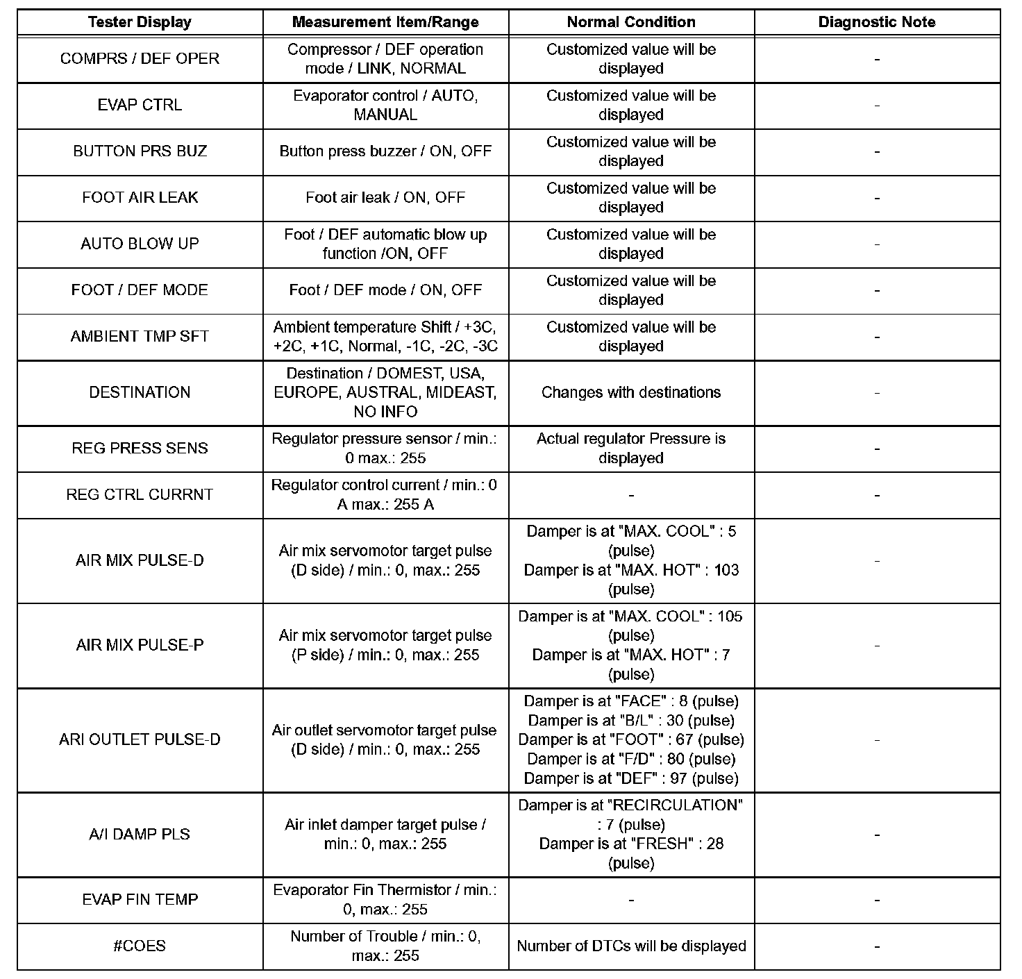 DATA LISTHINT: Using the intelligent tester to read the Data List allows the values or states of switches, sensors, actuators and other items to be read without removing any parts. This non-intrusive inspection can be very useful because intermittent conditions or signals may be discovered before parts or writing is disturbed. Reading the Data List information early in troubleshooting is one way to save diagnostic time.