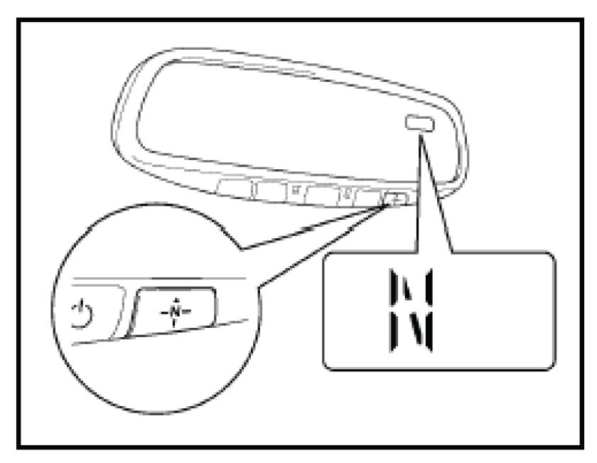 1. Turn the ignition switch to the "ON" position and check that the direction (N, NE, E, SE, S, SW, W, NW) appears on the compass display.