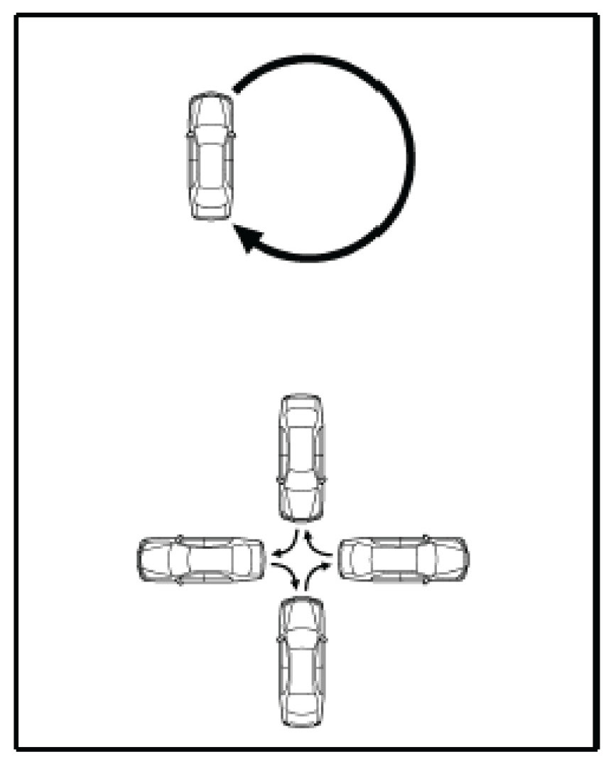 5. Drive the vehicle slowly at 5 mph/8 kph, or less, in a circle until the direction is displayed. If there is not enough space to drive in a circle, drive around the block until the direction is displayed.