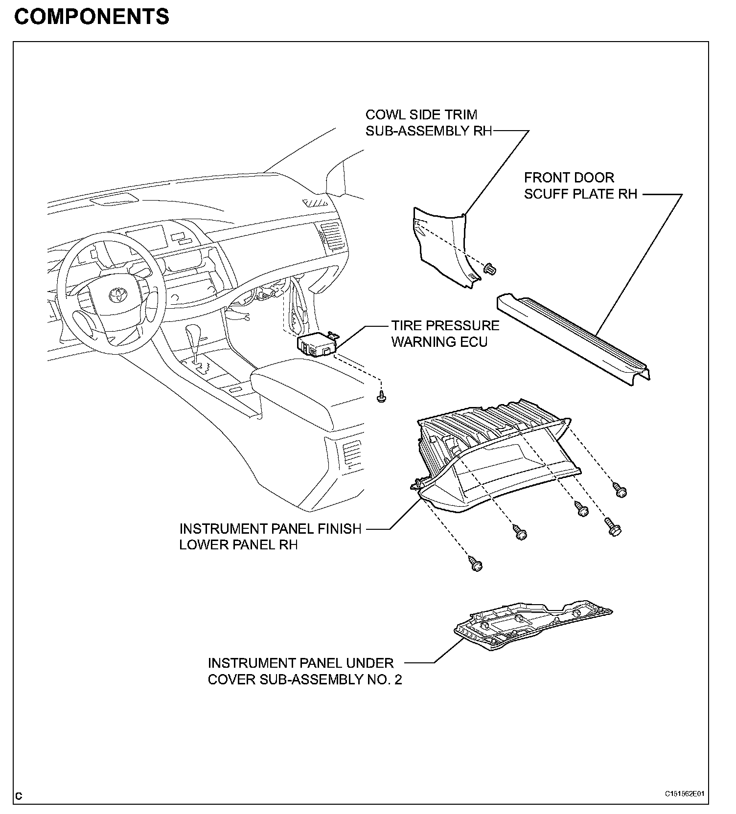 4. REMOVE INSTRUMENT PANEL UNDER COVER SUB-ASSEMBLY NO. 2