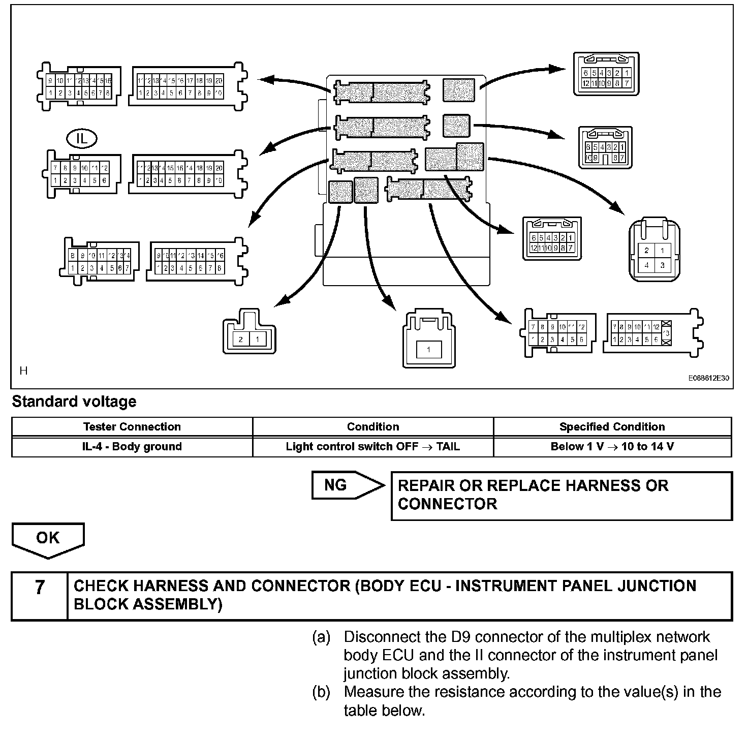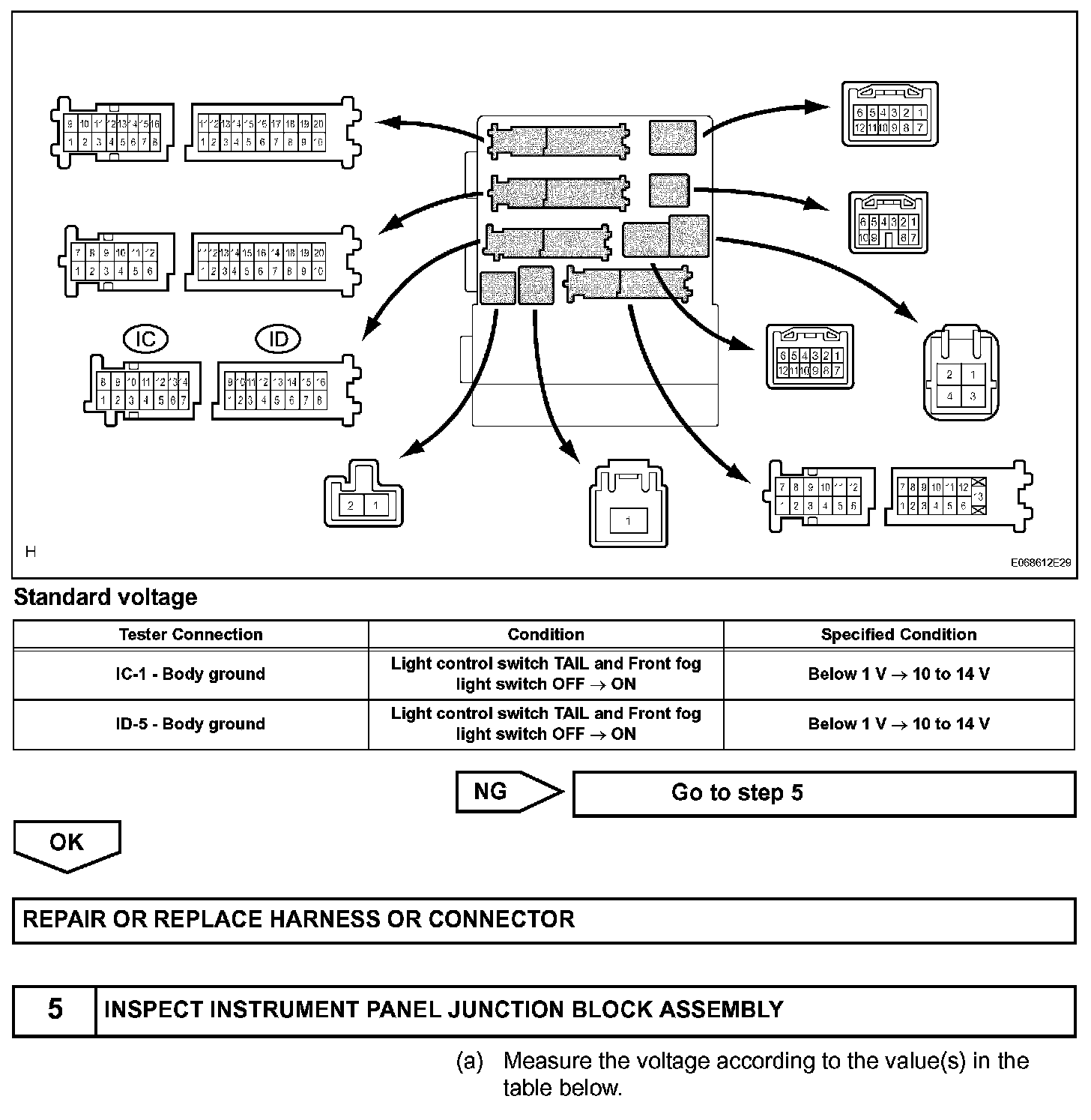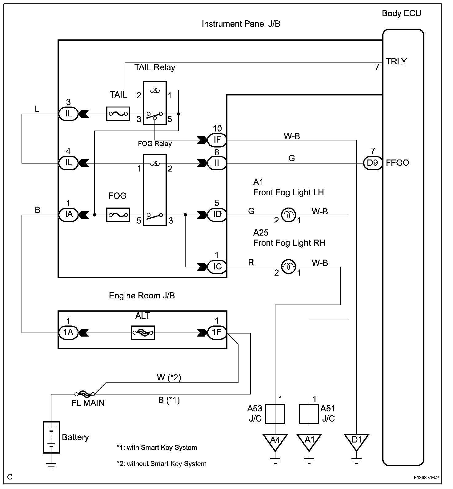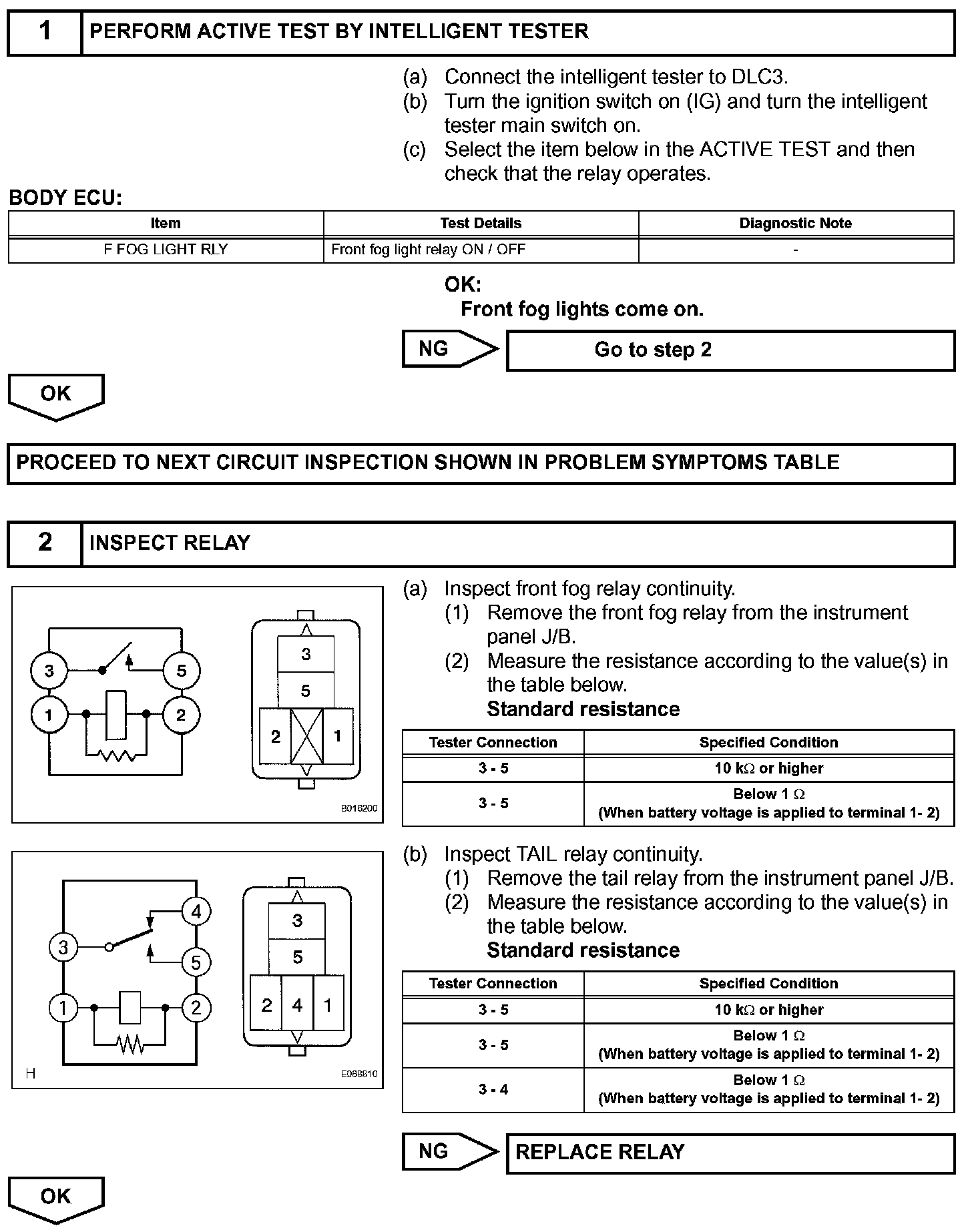 The multiplex network body ECU controls the FOG relay when a signal is received from the headlight dimmer switch assembly.
