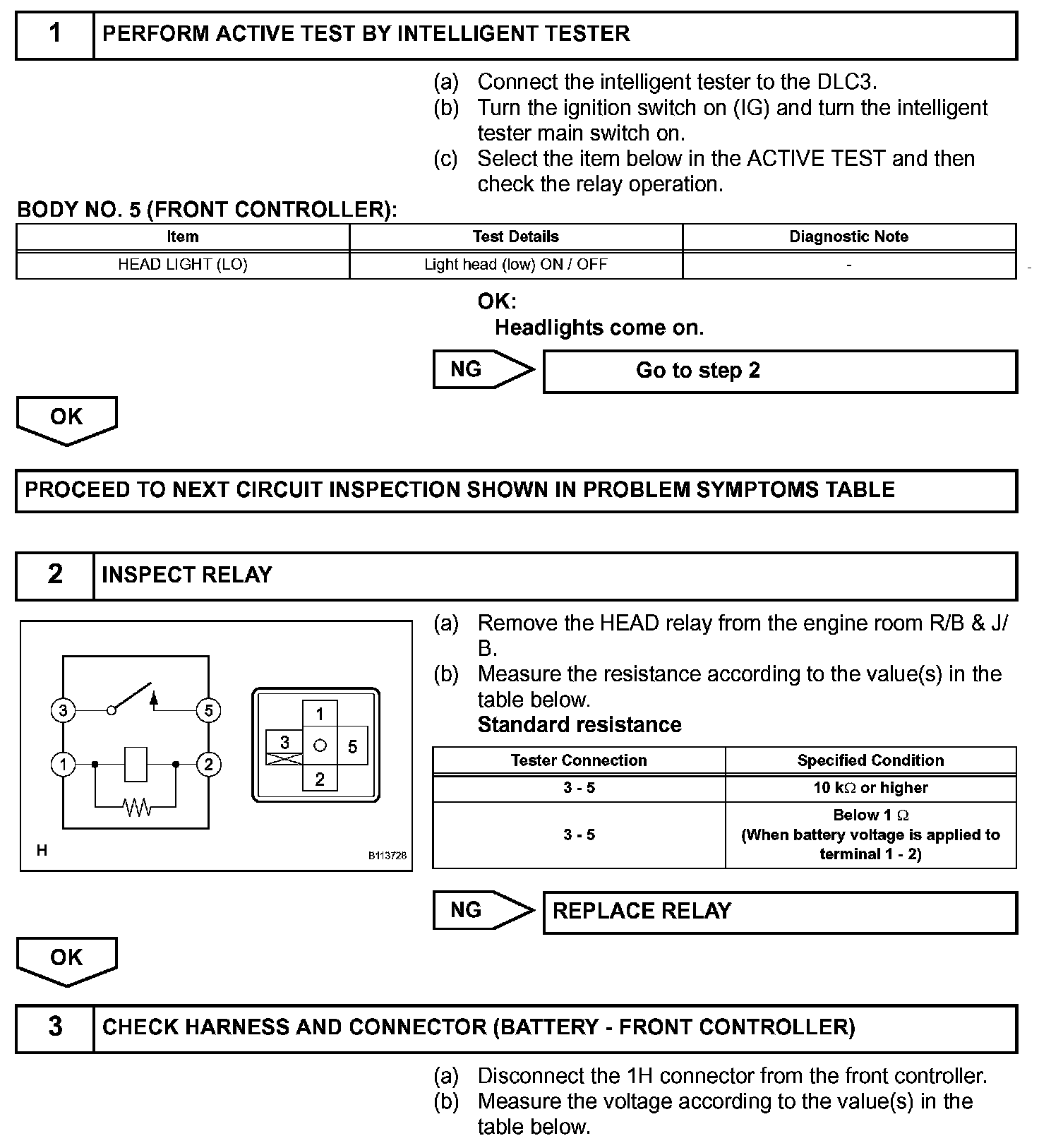 The front controller controls the HEAD relay when a signal is received from the headlight dimmer switch assembly.