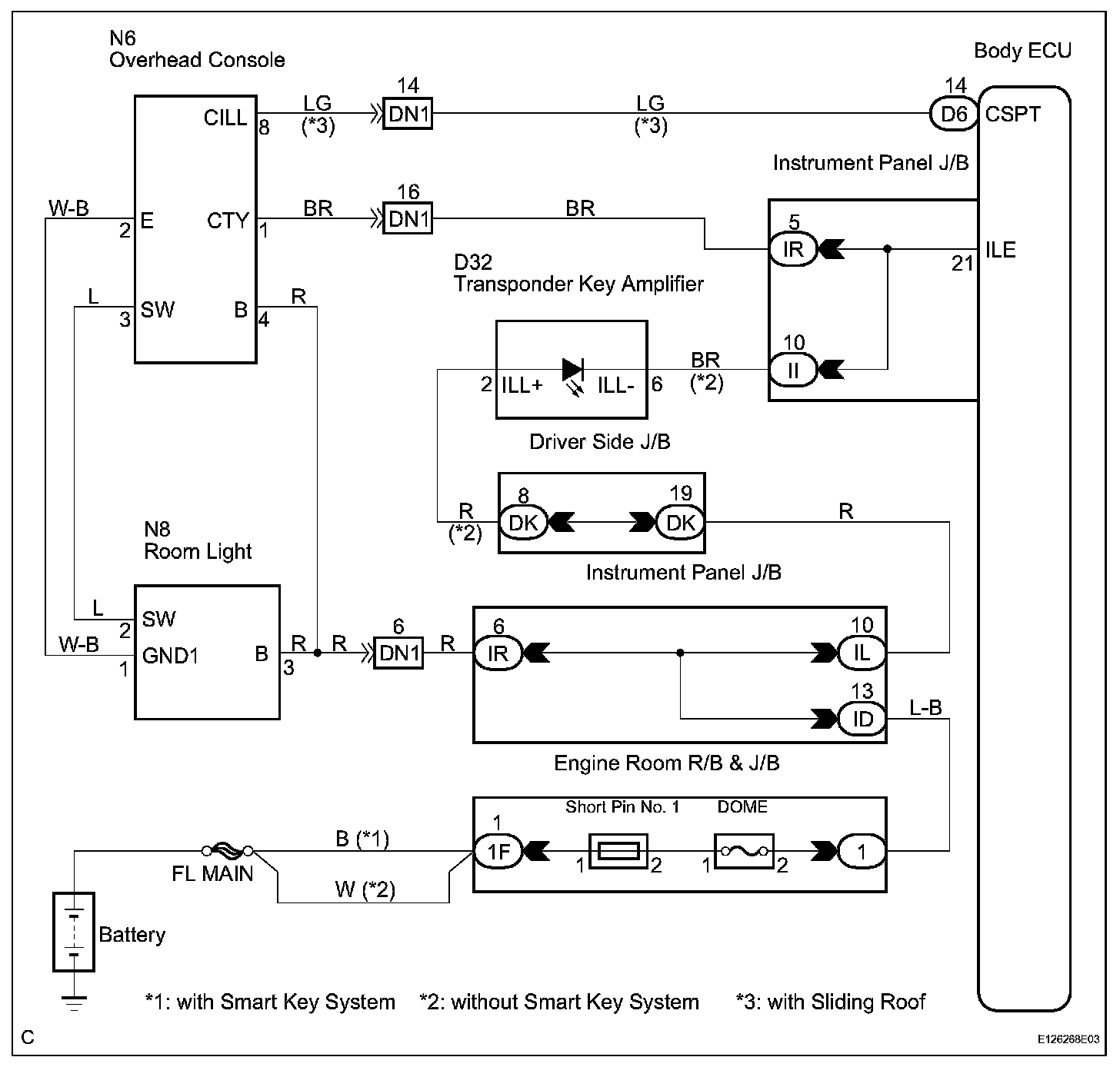 The multiplex network body ECU controls the following illumination lights.