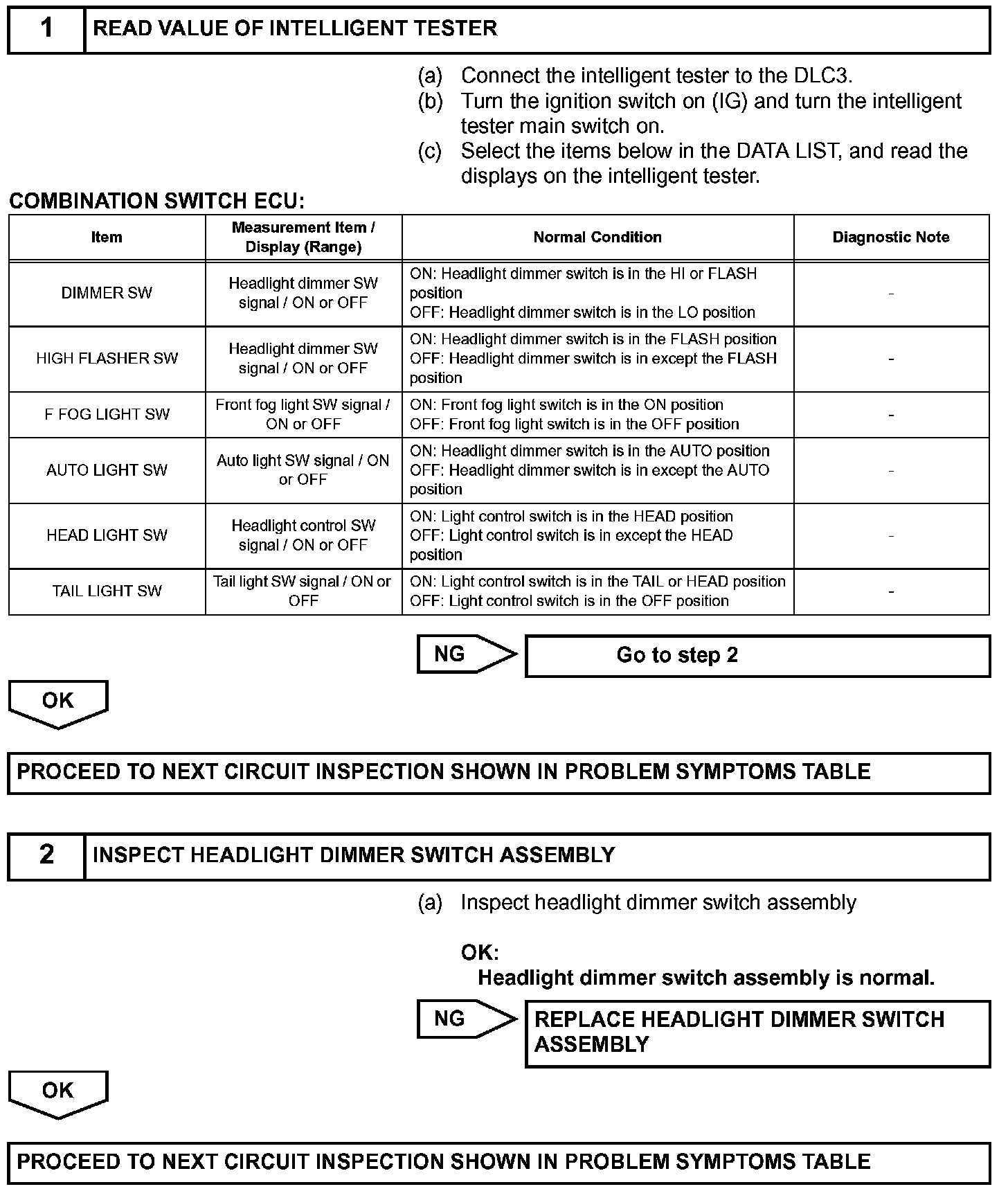 The combination switch ECU receives the informations of the light control switch, and sends them to each ECU via multiplex communication system.