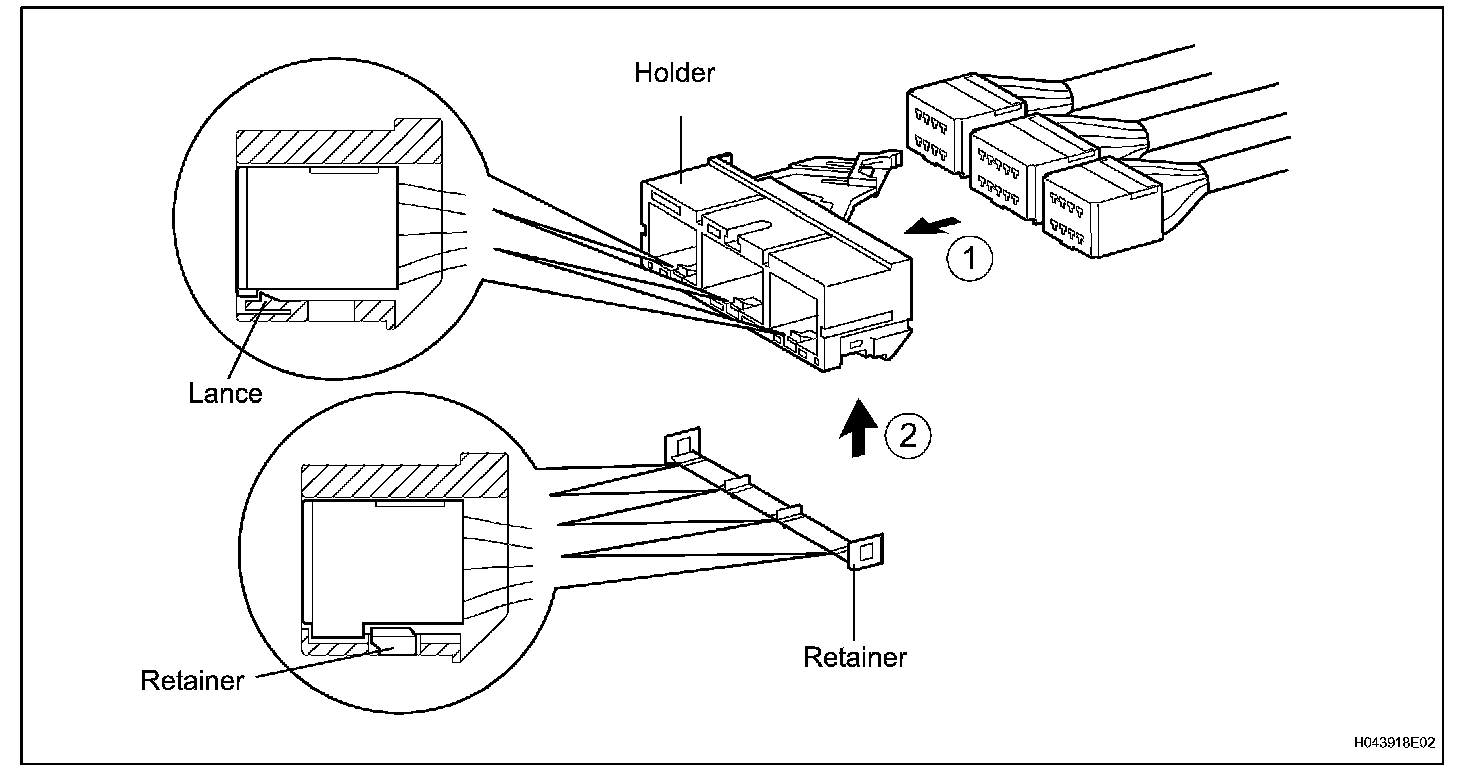 Both the primary lock with holder lances and the secondary lock with retainer prevent the connectors from becoming disconnected.