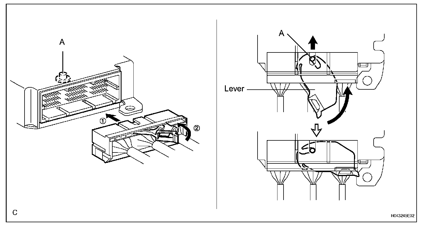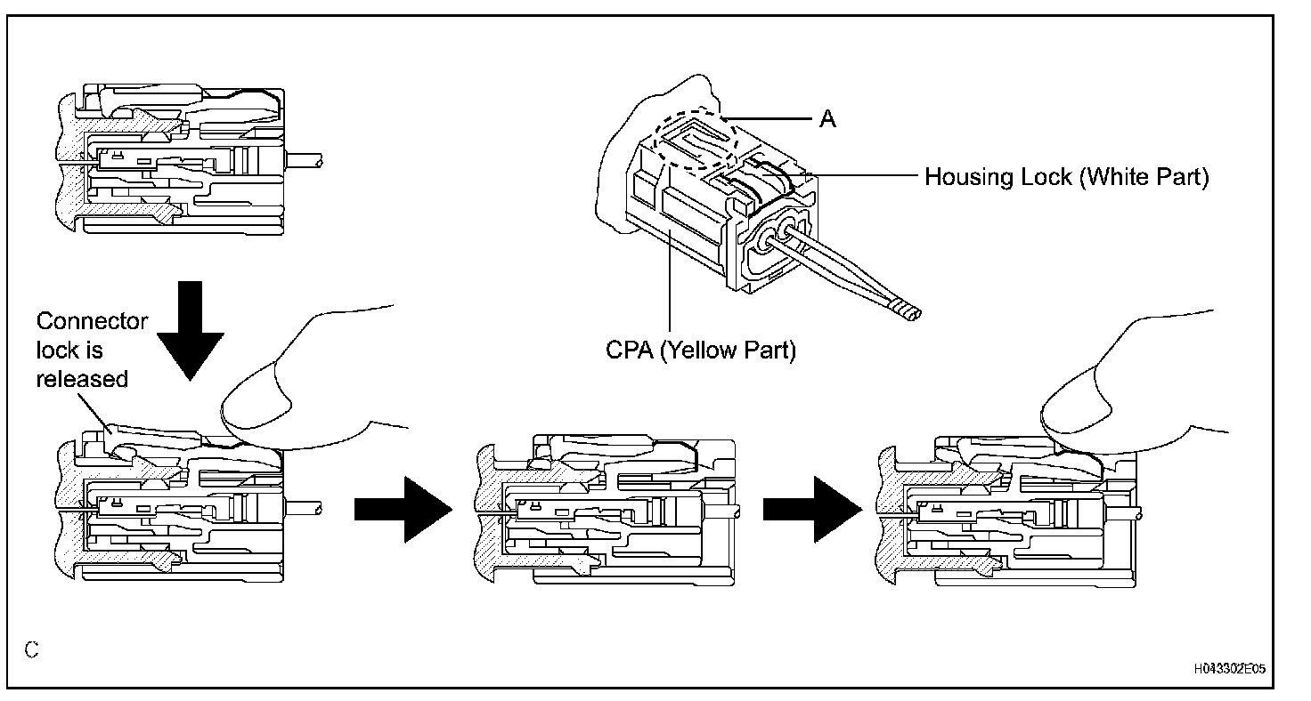 HINT: Do not push down the A part shown in the illustration when disconnecting.