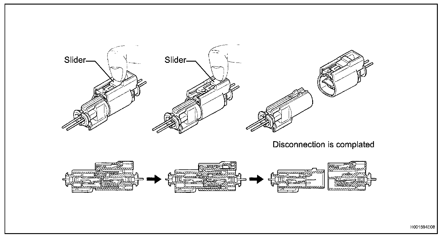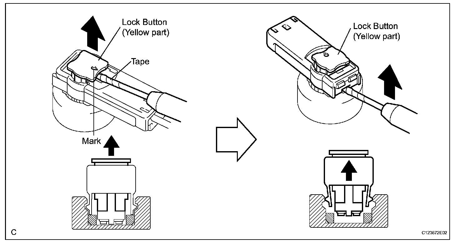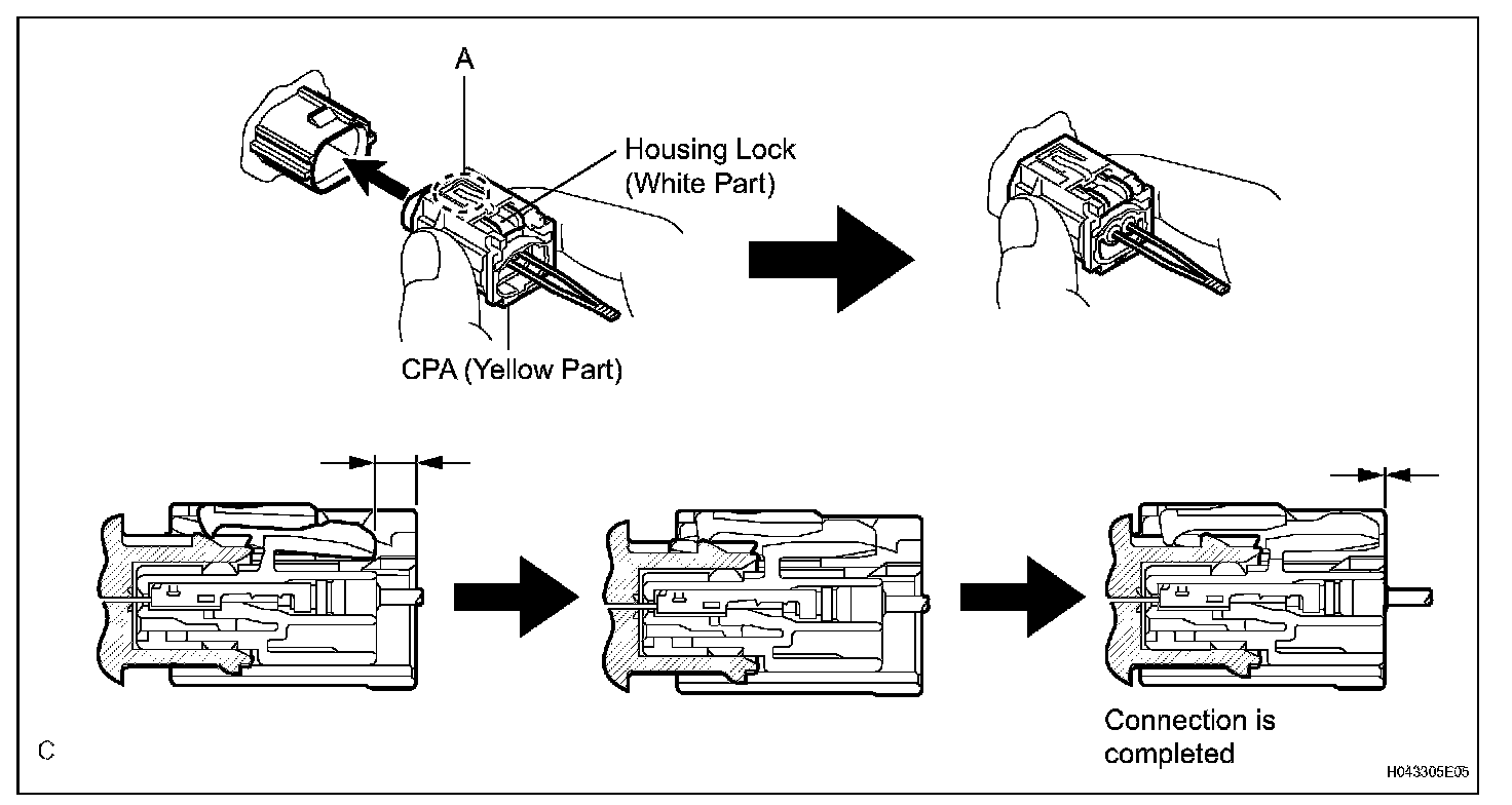 c. After disconnecting the connector, check that the position of the housing lock (white part) is as shown in the illustration.