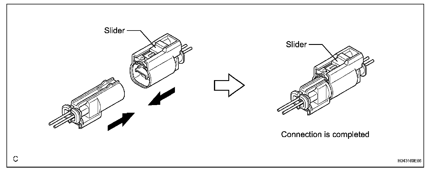 a. Connect the connector as shown in the illustration. (When locking, make sure that the slider returns to its original position and a click sound can be heard.)