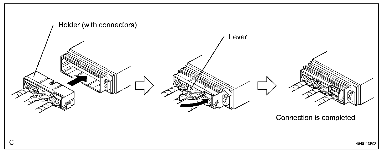 b. Push the lever to connect the holder (with connectors). (When locking, a click sound can be heard.)
