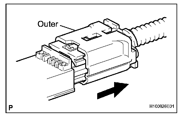a. While holding both the sides of the outer connector locking sleeve, slide the outer in the direction shown by the arrow.