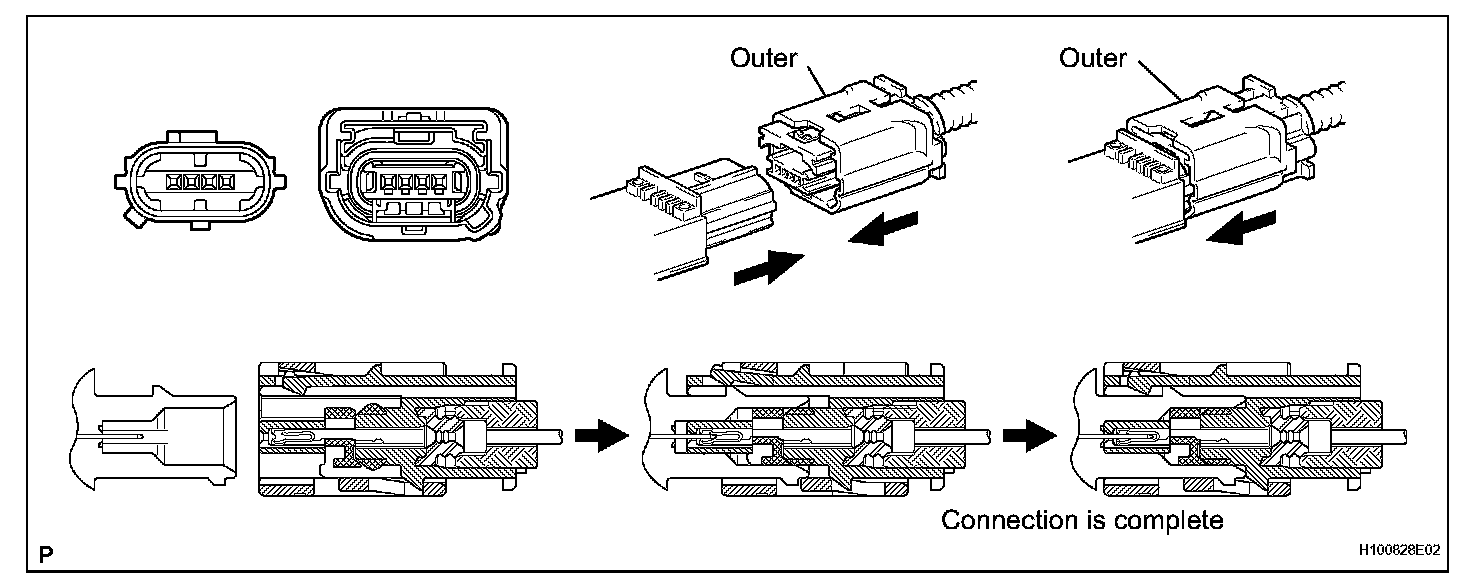 a. Connect the connector as shown in the illustration. (When locking, make sure that the outer returns to its original position and a click sound can be heard.)