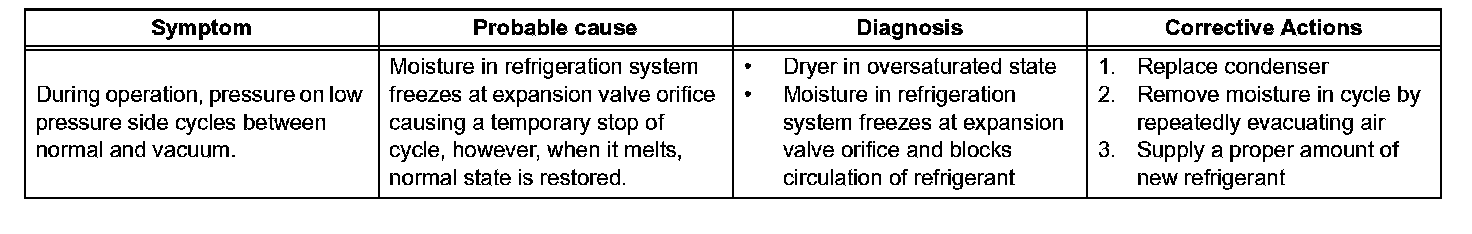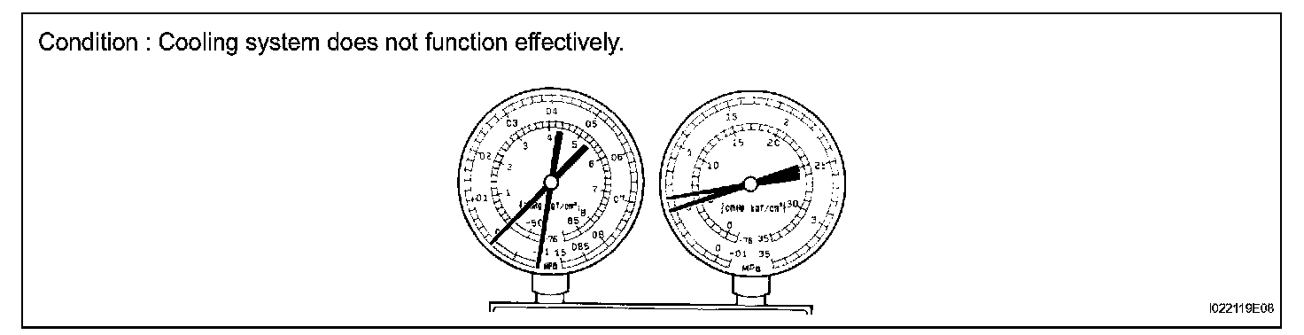 a. This is a method in which trouble is located by using a manifold gauge set. Read the manifold gauge pressure when the following conditions are established.