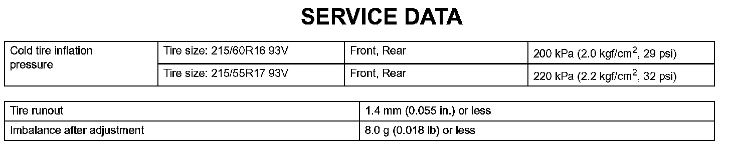 Tire And Wheel - Service Data: