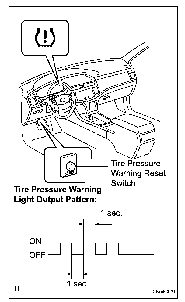 (f) Check that the tire pressure warning light blinks 3 times (1 second ON, 1 second OFF).