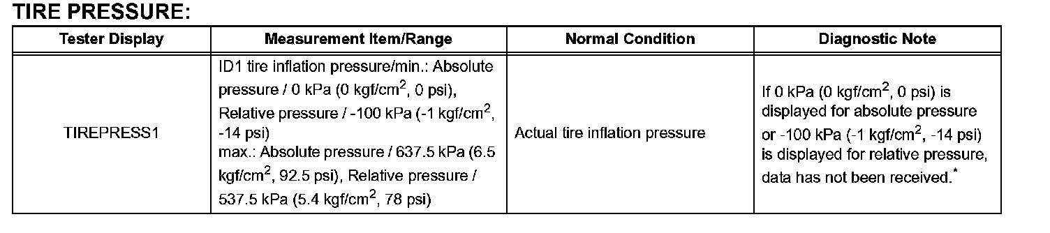 (a) Confirm that the data of tire pressure of all tires are displayed on the intelligent tester screen.