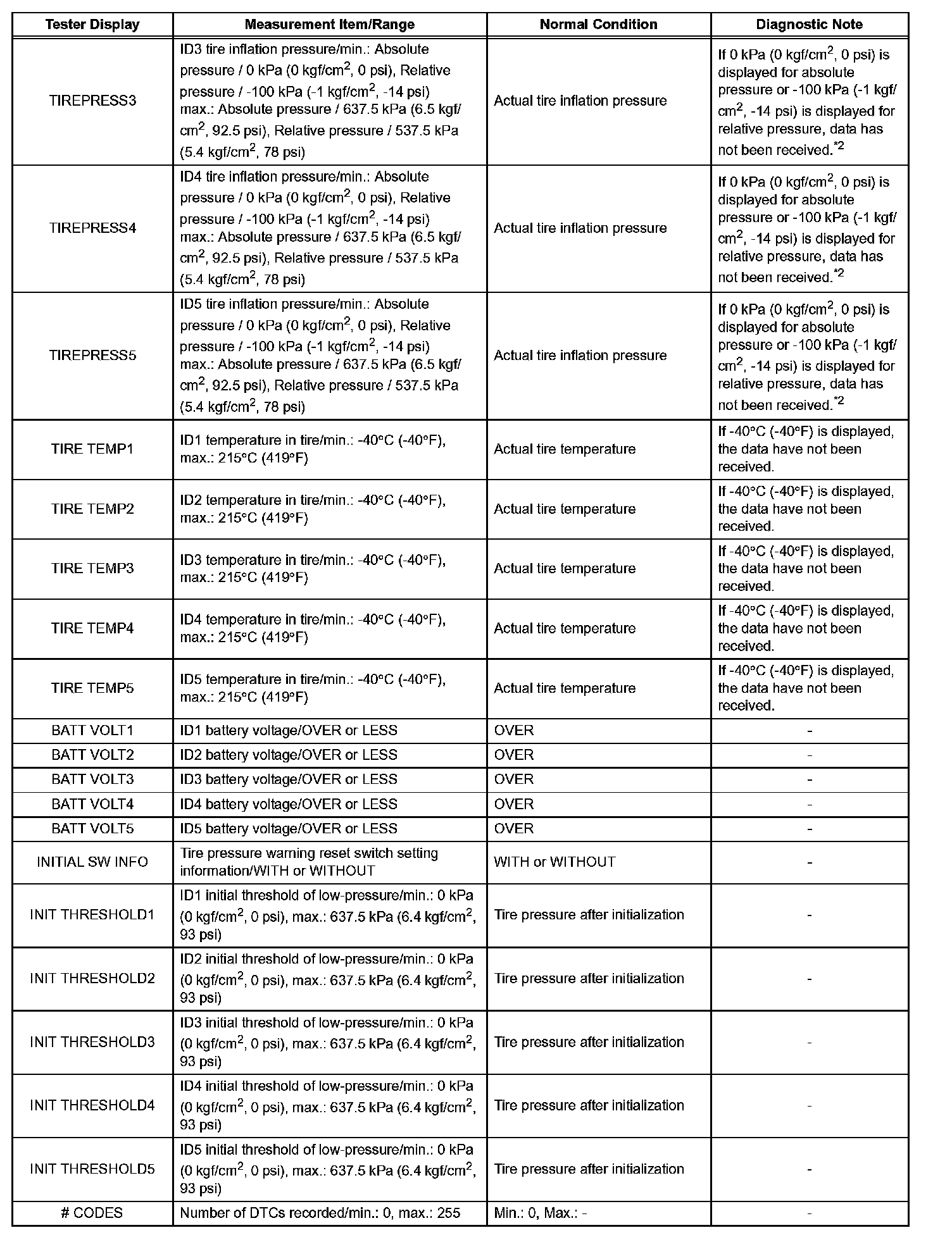 *2: It may take about 2 or 3 minutes until the values are displayed. If the values are not displayed after a few minutes, perform troubleshooting according to the inspection procedure for DTCs C2121/21 to C2125/25. C2121