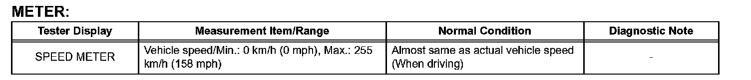 NOTICE: In the table, the values listed under "Normal Condition" are reference values. Do not depend solely on these reference values when deciding whether a part is faulty or not.