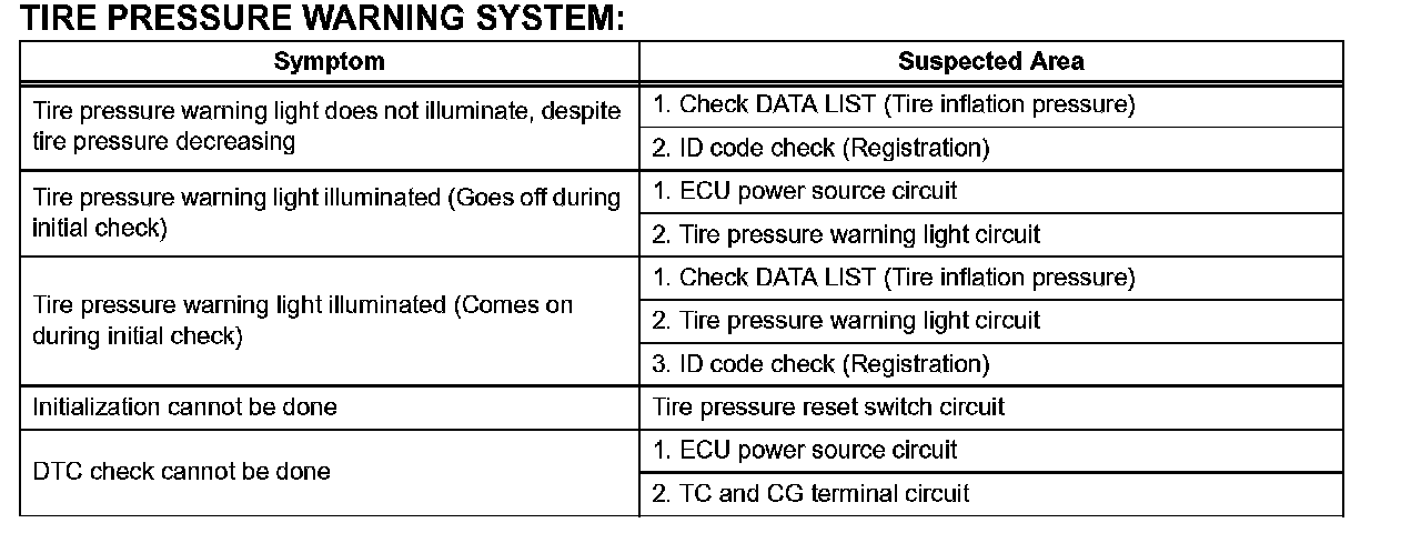 - Inspect the fuses and relays related to this system before inspecting the suspected areas below.