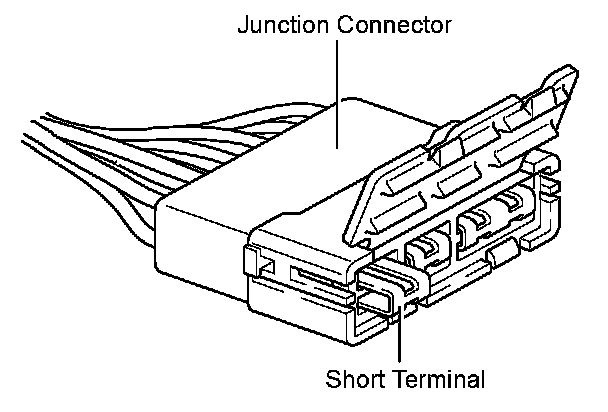 Junction connector include a short terminal which is connected to a number of wire harnesses. Always perform inspection with the short terminal installed.