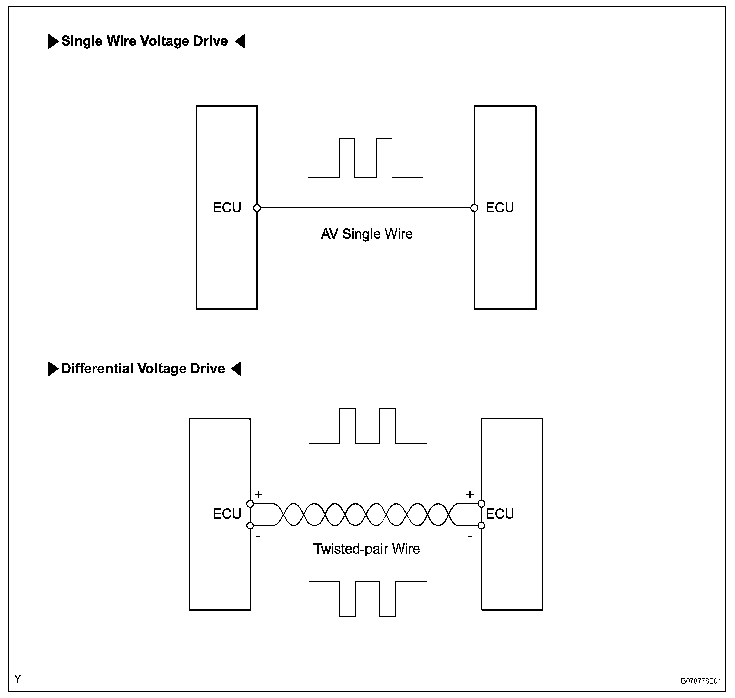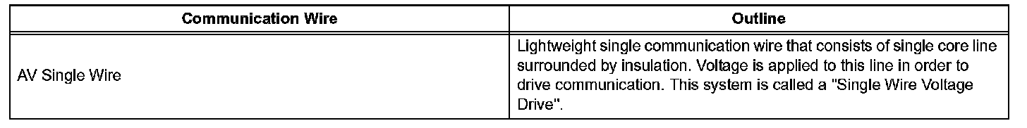 2. A single, Automobile Vinyl (AV) wire is used for BEAN communication. A twisted-pair wire is used for CAN and AVC-LAN communication.