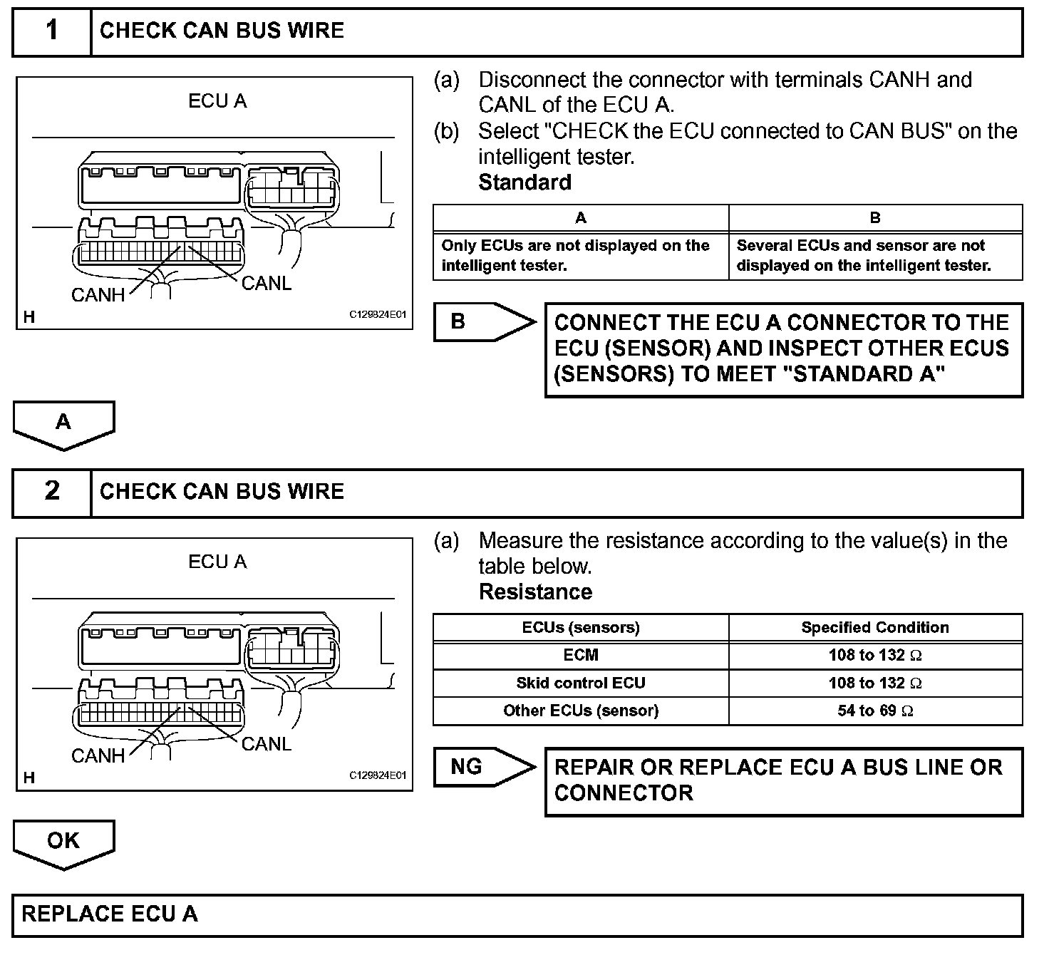 - The given is the troubleshooting procedure of an open in either CANH or CANL of the ECU A.