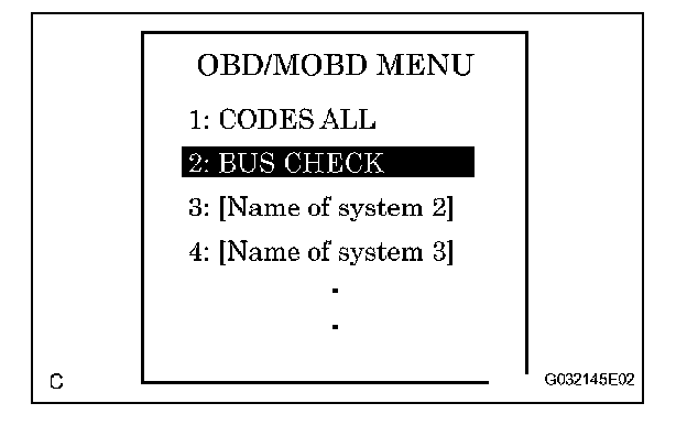 a. Select "BUS CHECK" from the "OBD / MOBD MENU" screen.