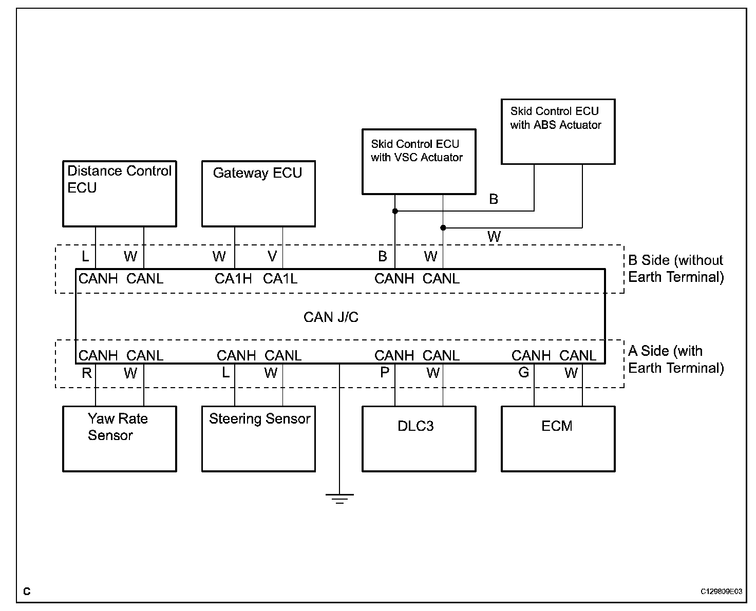 a. CAN J/C A side (with earth terminal) and CAN J/C B side (without earth terminal):