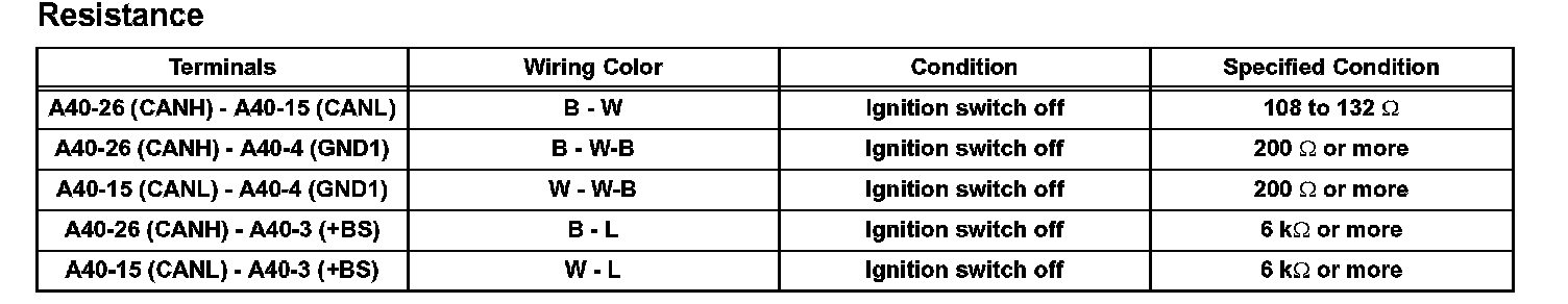 a. Measure the resistance according to the value(s) in the table.