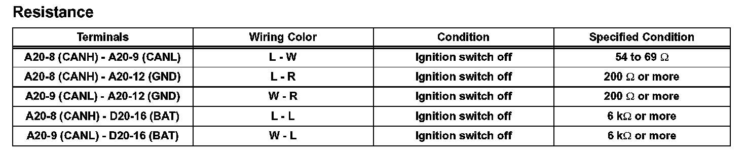 TERMINALS OF ECUHINT: This describes the standard CAN values for all CAN related components.