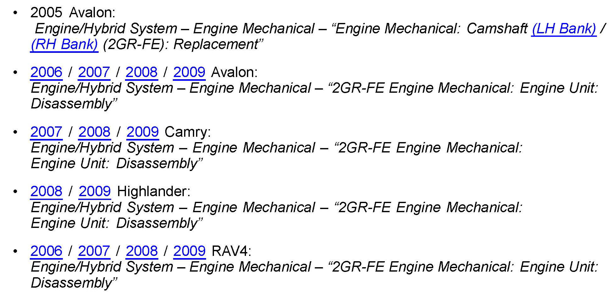 ^ Applicability has been updated to include 2009 model year Venza.