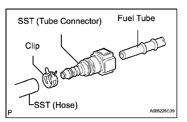 1. Install the fuel tube connector to SST (hose), then connect the tube connector to the fuel pipe (vehicle side).