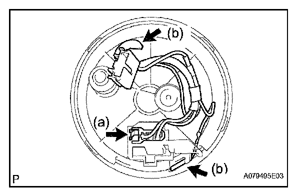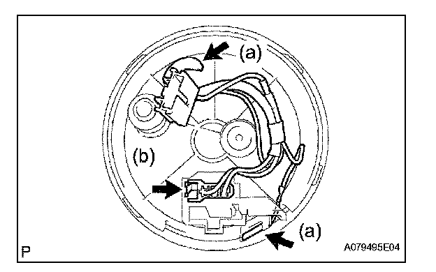 b. Using a screwdriver with its tip wrapped with tape, disengage the 4 snap claws from the claw holes, and pull out the fuel suction plate.