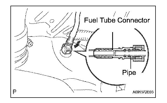 1. Push the fuel tube connector into the pipe until the fuel tube connector makes a "click" sound.