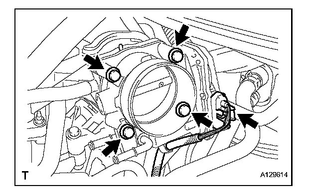 b. Remove the 4 bolts and throttle w/ motor body assembly from the intake air surge tank.