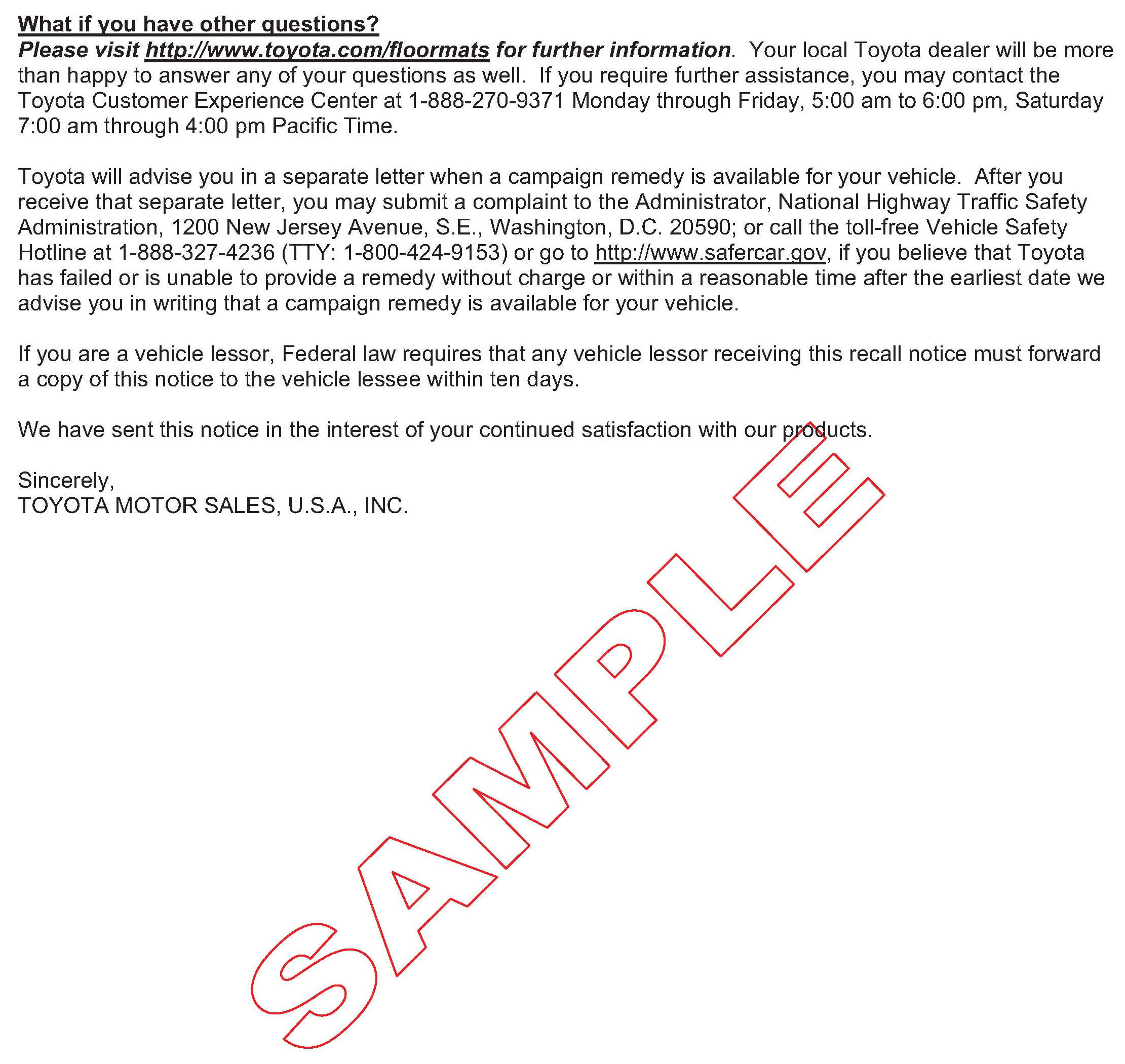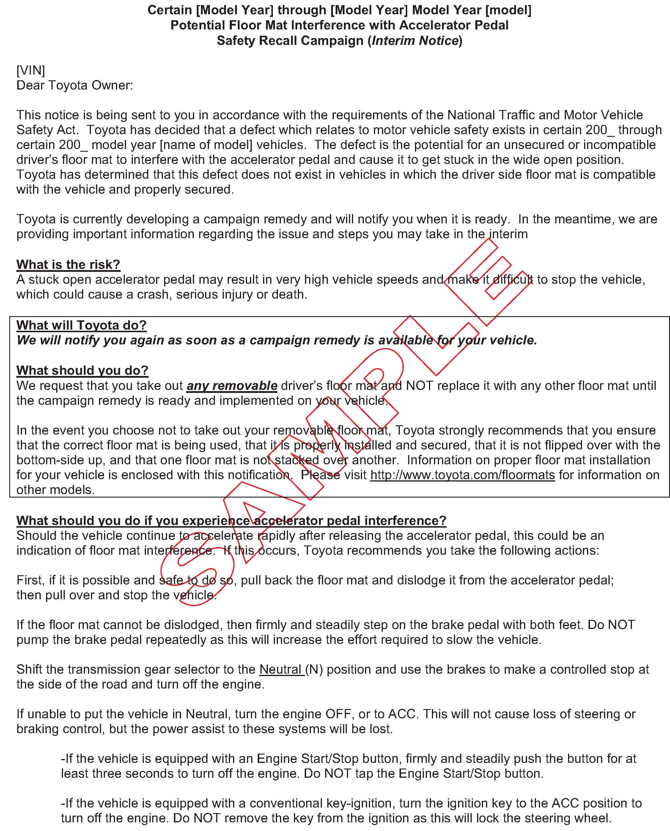 Recall - Floor Mat/Accelerator Pedal Interferance