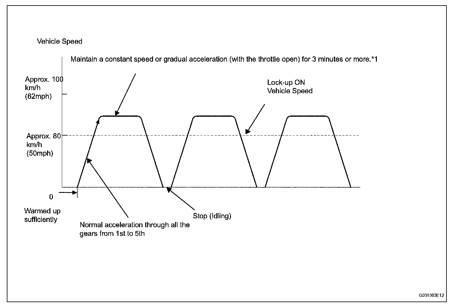 HINT: *1: Drive at such a speed in the uppermost gear, to engage lock-up. The vehicle can be driven at a speed lower than that in the above diagram under the lock-up condition.