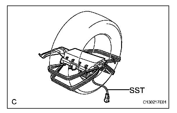 NOTE: Take care not to damage the SST wire harness.