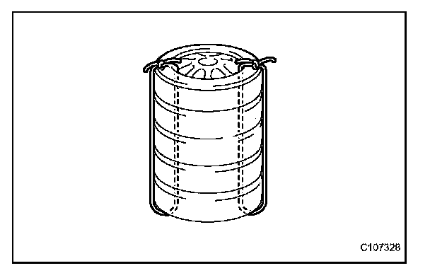 2. Place at least 2 tires over the tire which the driver side knee airbag assembly is tied to. The top tire should have a disc wheel installed.