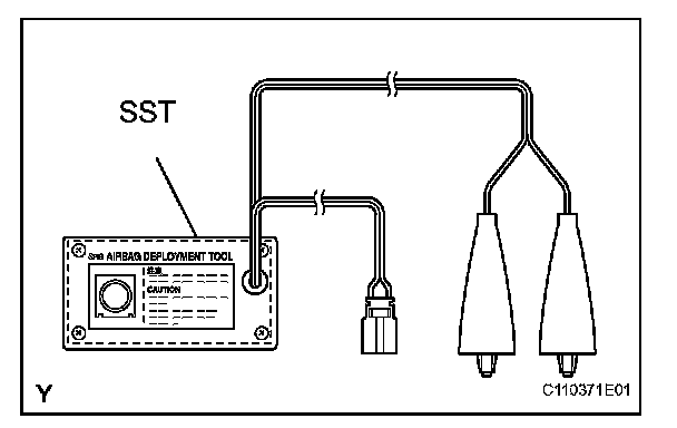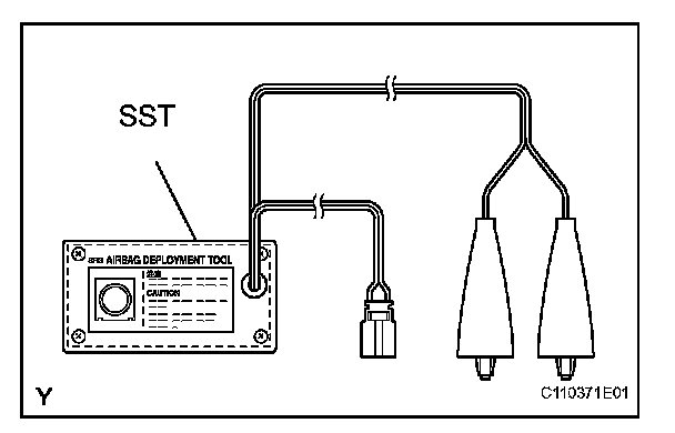 - When deploying the airbag, always use the specified SST (SRS Airbag Deployment Tool). Perform the operation in a place away from electrical noise.