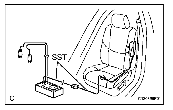 1. Connect the SST connector to the front seat side airbag assembly connector.