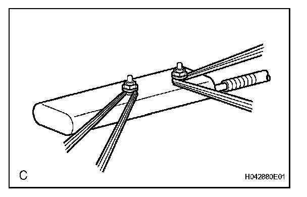 2. Wind the wire harness around each of the stud bolts of the front seat side airbag assembly as shown in the illustration.