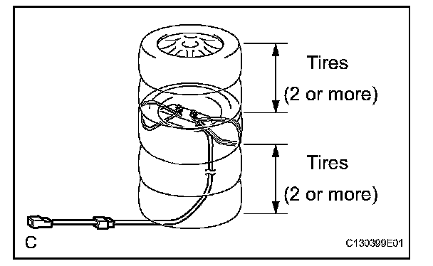 NOTE: To avoid damaging the SST connector and wire harness, do not lock the secondary lock of the twin lock. Also, secure some slack for the SST wire harness inside the tire.