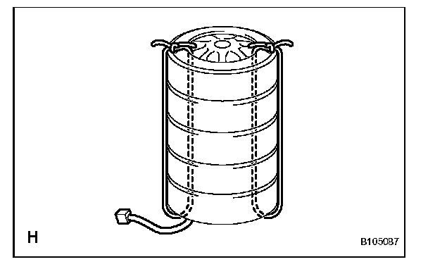 CAUTION: Make sure that the wire harness is tight. Looseness in the wire harness results in the tires coming free due to the shock when the airbag is deployed.