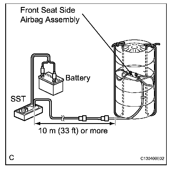 2. Move the SST at least 10 m (33 ft) away from the airbag tied down to the tires.