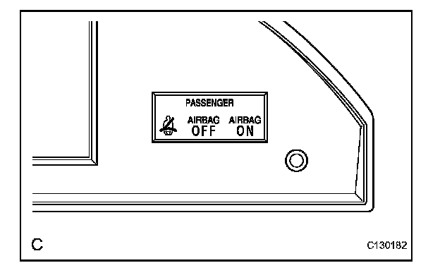1. The passenger airbag ON/OFF indicator is installed on the accessory meter assembly. This indicator informs the driver by ON/OFF indication, whether the occupant classification ECU puts the front passenger airbag assembly into an active state or inactive state.