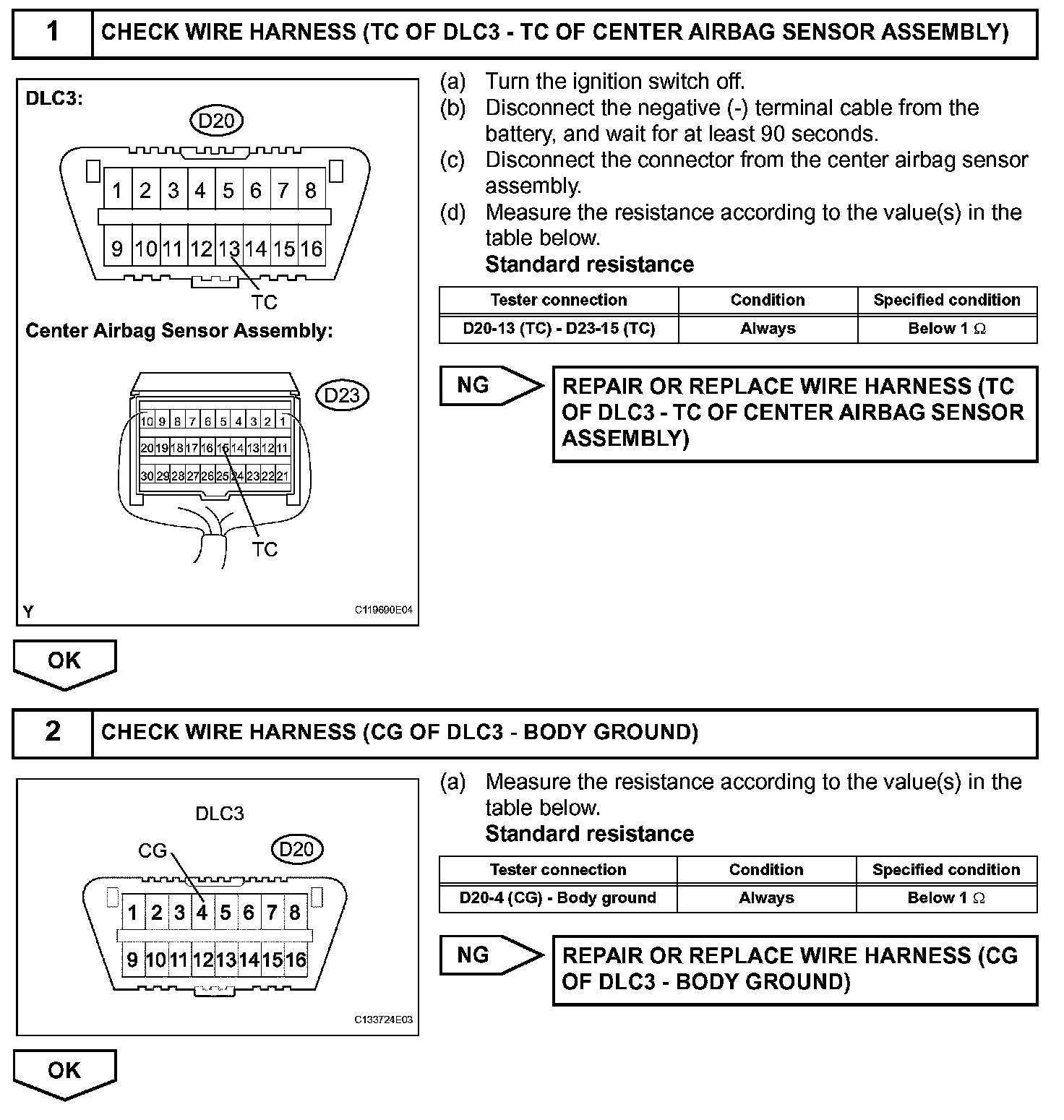 HINT: When each warning light keeps blinking, a ground short in the wiring of terminal TC of the DLC3 or an internal ground short in each ECU is suspected.