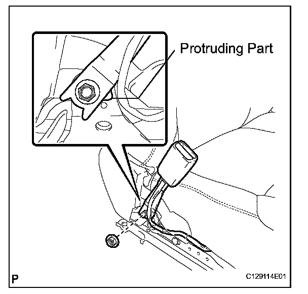 NOTE: Do not overlap the anchor part of the rear belt and the protruding part of the rear seat adjuster.