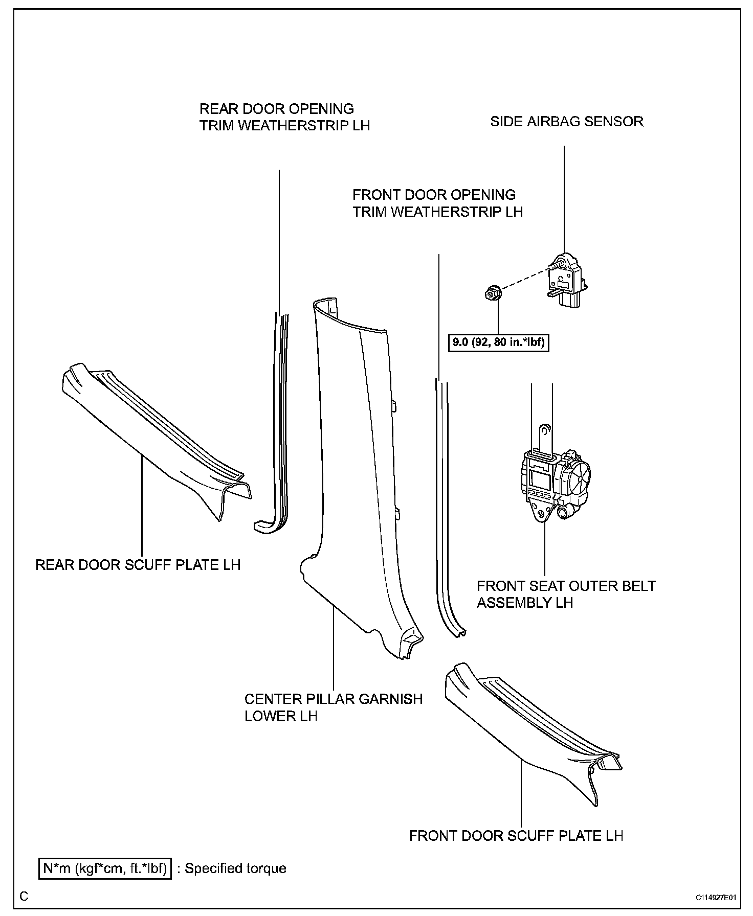 Torque: 9.0 N.m (92 kgf.cm, 80 in.lbf)