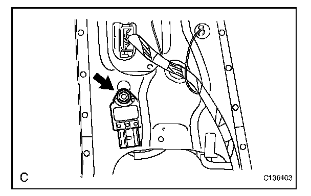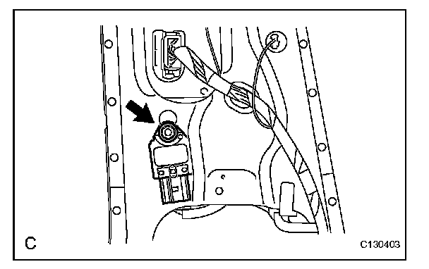 - When installing the side airbag sensor LH, be careful that the SRS wiring does not interfere with other parts and that it is not pinched between other parts.