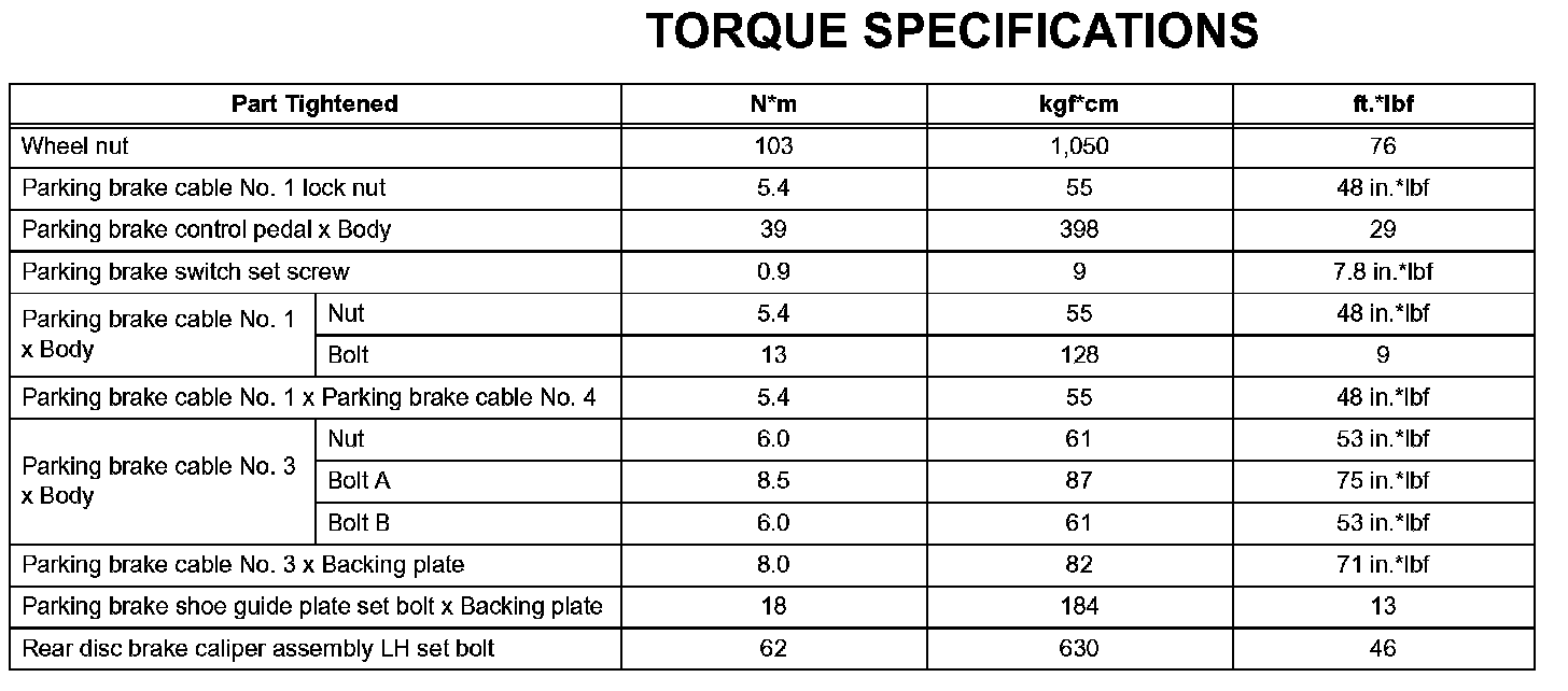 Parking Brake - Torque Specifications: